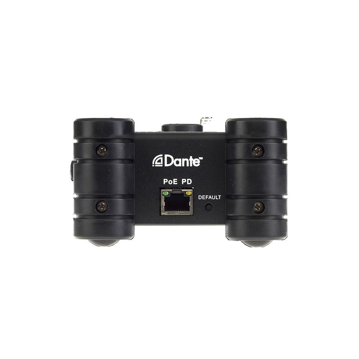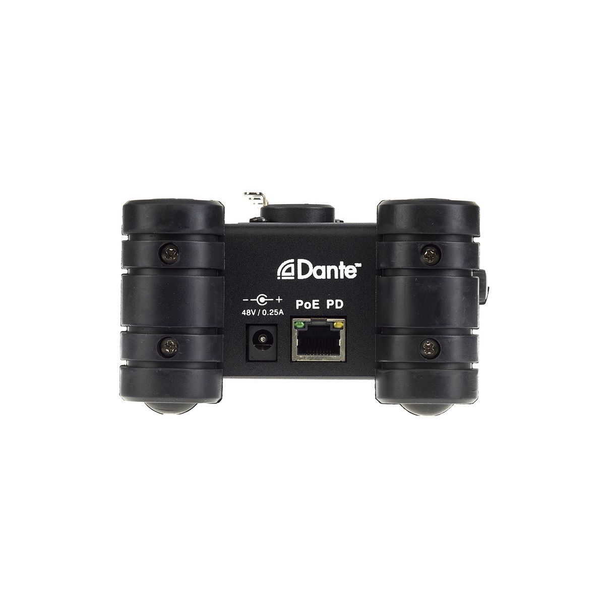 Zowel de NBB-04R als de NBB-04T heeft twee ethernet poorten waarmee je meerdere Dante producten in hetzelfde netwerk kunt gebruiken. Naast de bijgeleverde adapter kan je hem ook PoE voeden. |